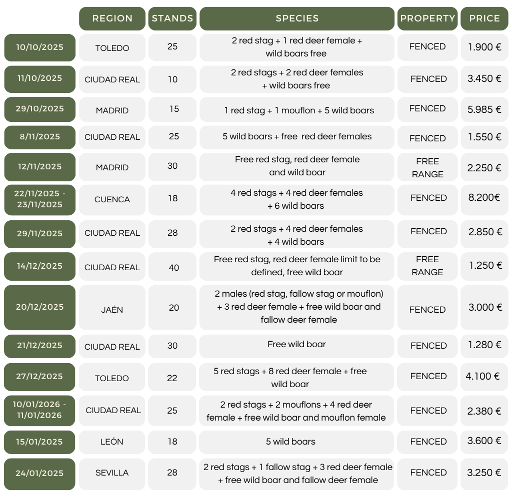 Driven hunt program in Spain for 2025/2026 season